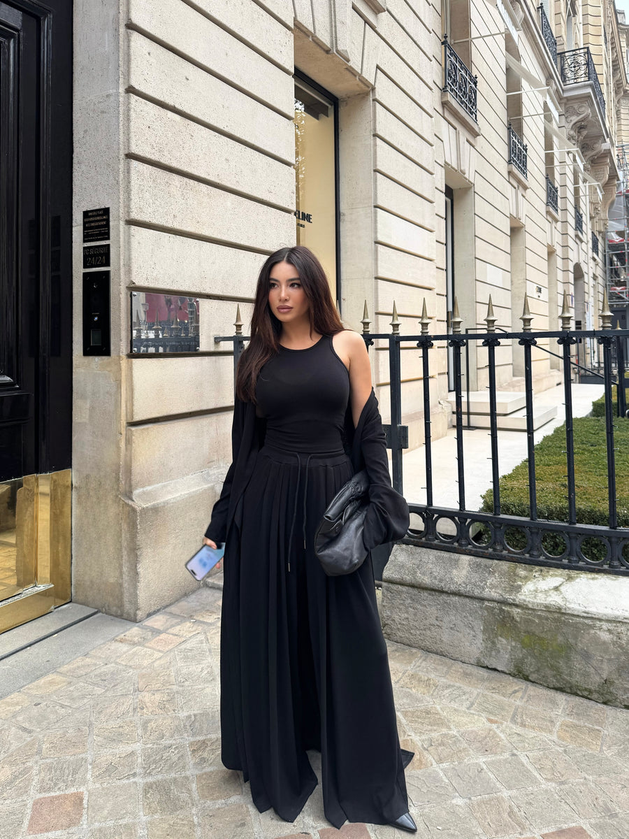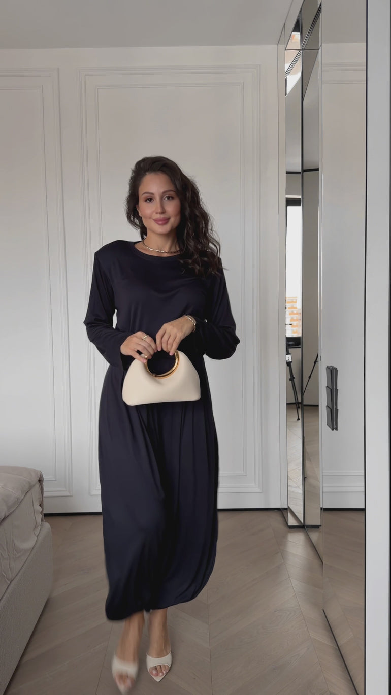 Long Sleeve Crewneck Dress Maxi Black