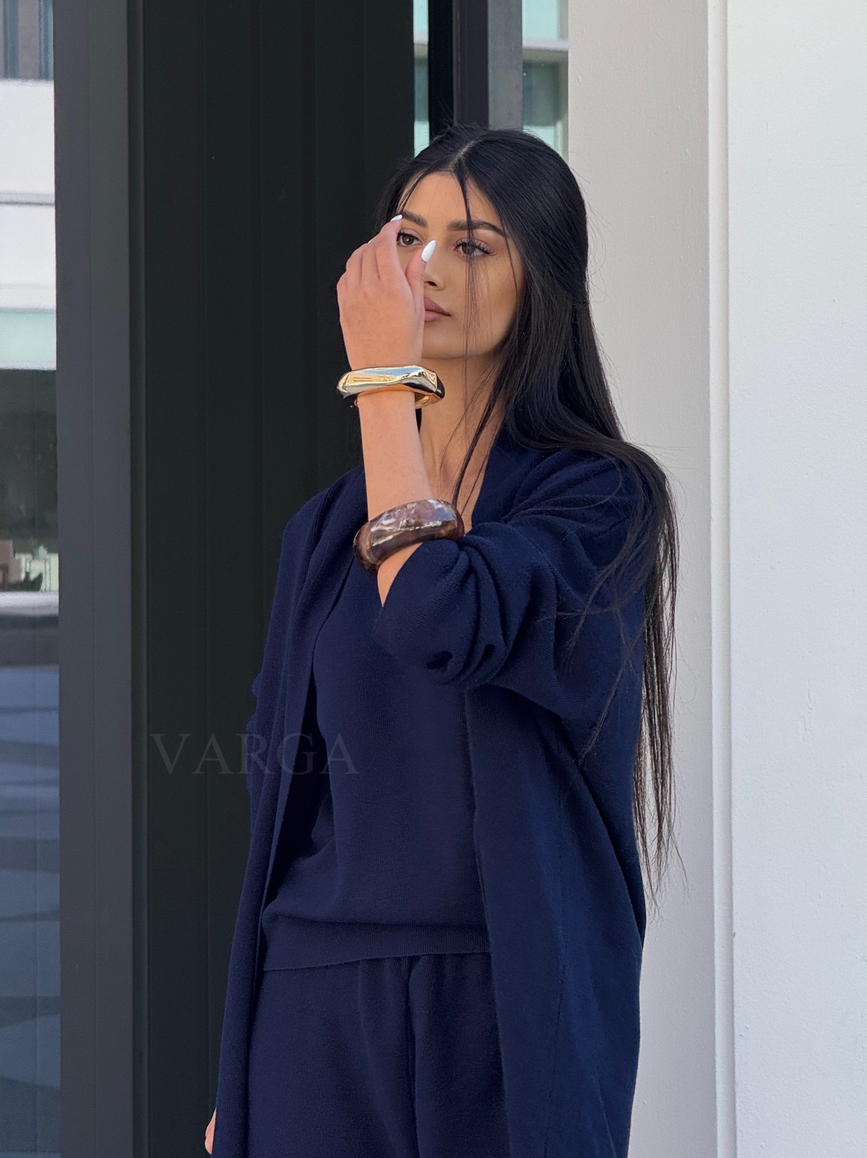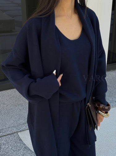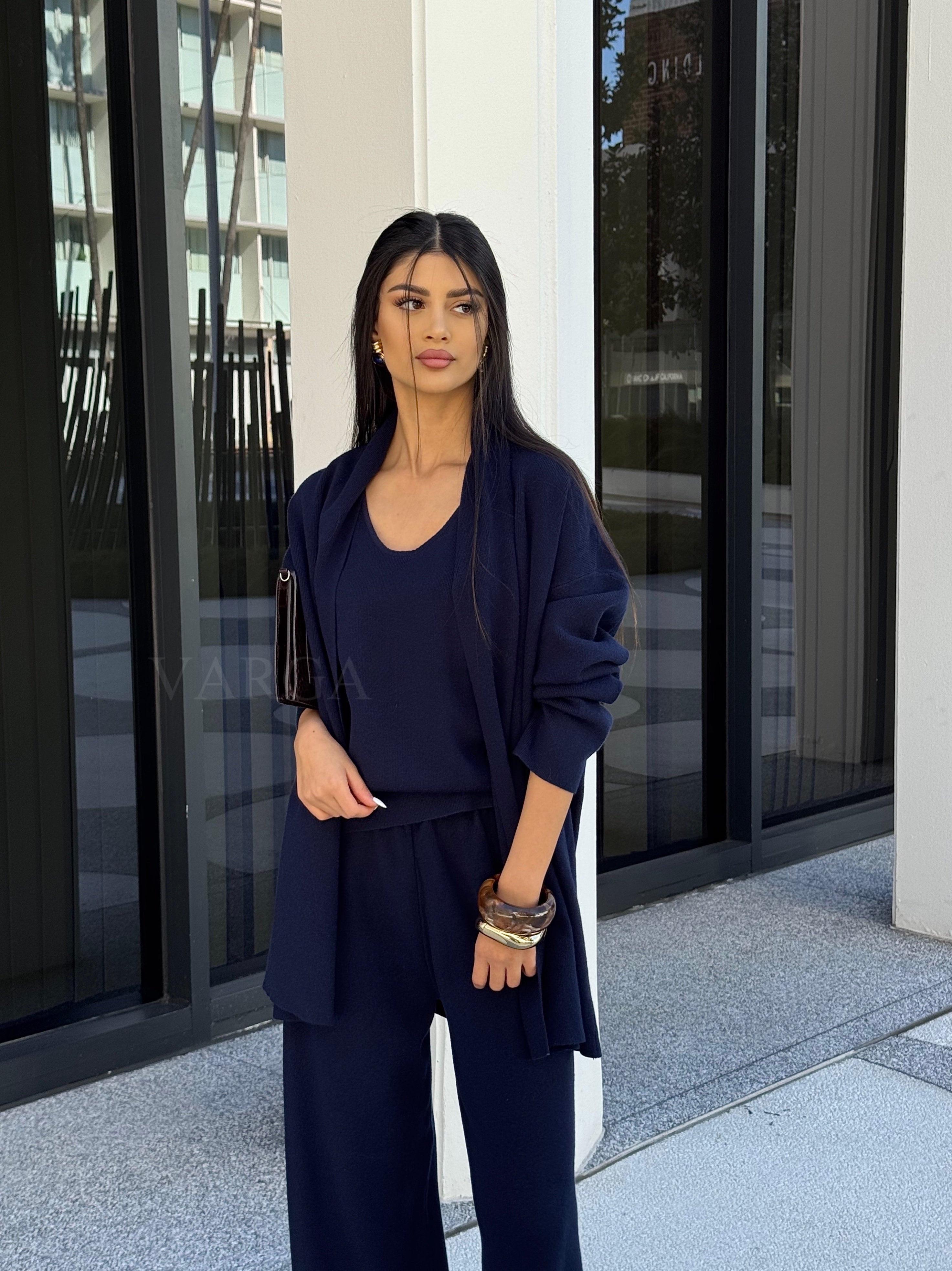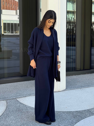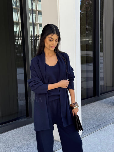 The Sofia Set is a blend of comfort and contemporary style. The set features a cardigan,top and a matching pants.