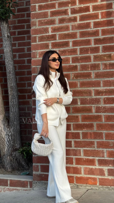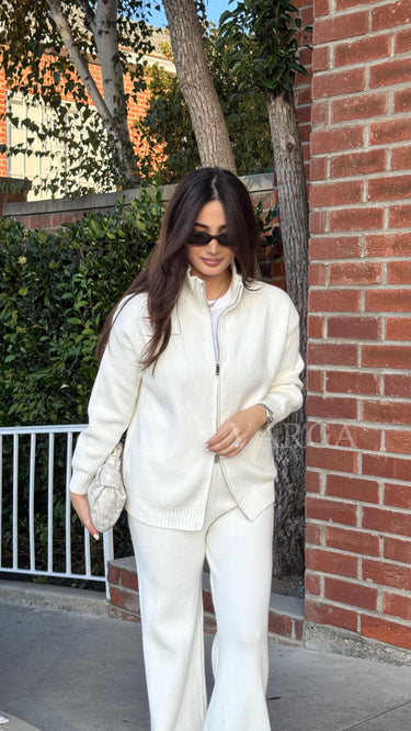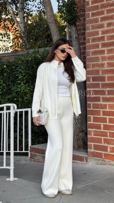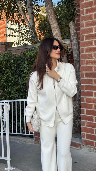 The Norah Set is a blend of comfort and contemporary style. The set features a full zip cardigan and a matching pants.